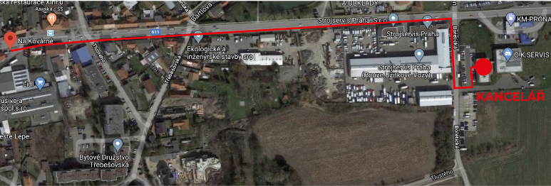 Další možností, jak se k nám dostat, jsou linky příměstských autobusů (303, 344, 353, 354, 398), kterými pojedete na zastávku Na Kovárně a následně dojdete pár metrů pěšky. Na tyto autobusy je možné nasednout na autobusovém nádraží Černý Most. Vyhledat trasu